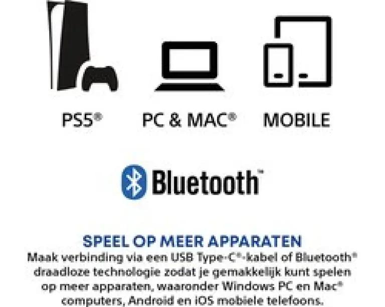 Deze Bluetooth-gamepad werkt niet alleen met de PS5, maar ook met Windows-pc's, Mac-computers, Android- en iOS-apparaten. Je kunt eenvoudig verbinden via Bluetooth of USB Type-C kabel en zelfs games streamen vanaf je PlayStation-console met de PS Remote Play-app. Zo geniet je overal van je favoriete games met de bekende precisie van Sony.