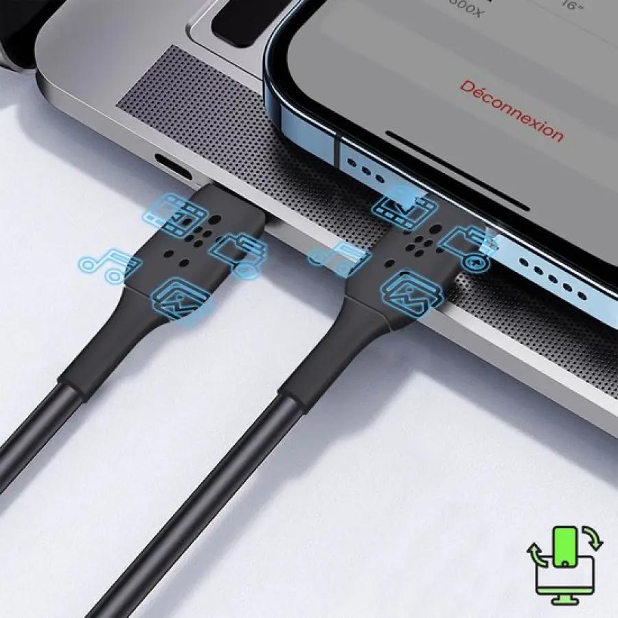 De kabel is 1 meter lang, wat hem perfect maakt voor gebruik thuis, in de auto, op kantoor of onderweg. Je hebt altijd genoeg lengte om je apparaat comfortabel te gebruiken terwijl het oplaadt, zonder onhandige lange snoeren.
