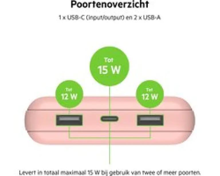 De BELKIN powerbank wordt geleverd met een handige USB-A/USB-C-kabel, zodat je meteen kunt beginnen met opladen. Daarnaast geeft een duidelijk ledlampje aan wanneer de powerbank bijna leeg is en toe is aan een nieuwe lading. Zo kom je nooit voor verrassingen te staan en houd je altijd controle over je stroomvoorziening.