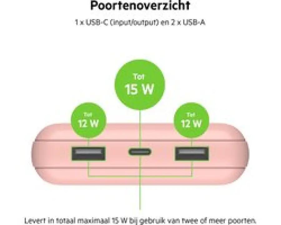 Met de BELKIN BOOST↑CHARGE BPB011BTRG powerbank houd je je apparaten overal en altijd opgeladen. Deze draagbare lader heeft een flinke capaciteit van 10.000 mAh, wat betekent dat je je smartphone tot wel twee keer volledig kunt opladen. Perfect voor onderweg, op reis of gewoon als je even geen stopcontact in de buurt hebt.