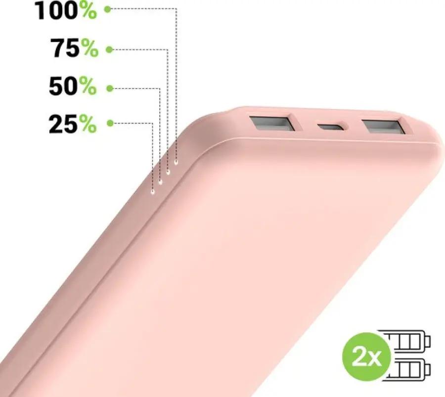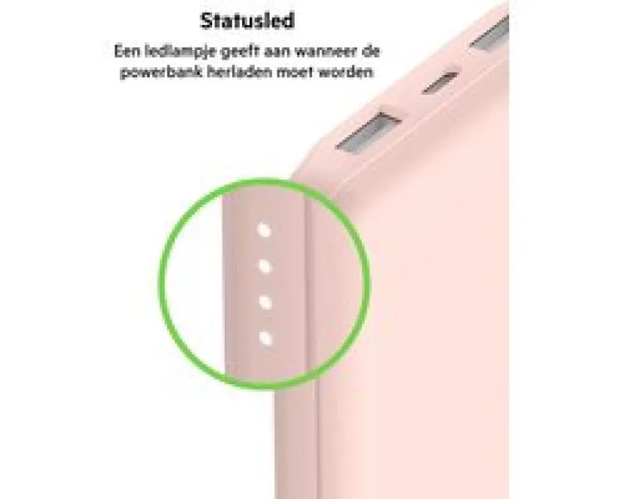 Met zijn roze kleur en compacte formaat neem je deze powerbank makkelijk mee in je tas of rugzak. Met een gewicht van slechts 268 gram merk je nauwelijks dat je hem bij je hebt, maar beschik je wel over een krachtige lader voor al je apparaten.