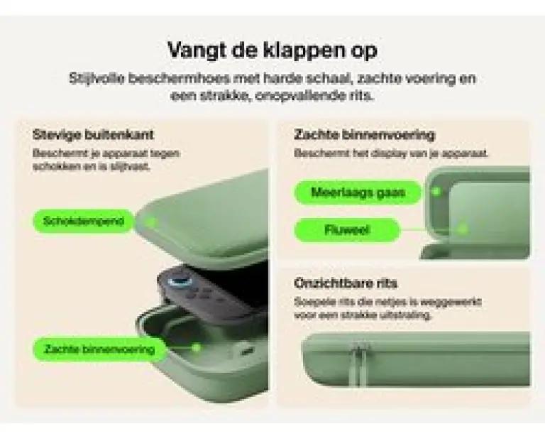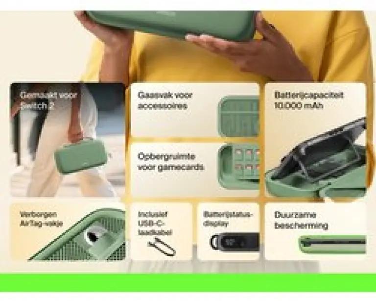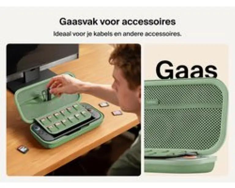 Dankzij het compacte formaat past deze hoes makkelijk in je rugzak of handbagage. Het handige polsbandje zorgt dat je hem comfortabel en veilig kunt meenemen. Bovendien is er ruimte voor maximaal 12 gamecards, zodat je al je favoriete spellen netjes georganiseerd bij de hand hebt. En met het speciale vakje voor een AirTag vind je jouw beschermhoes altijd terug, zelfs als je 'm eens kwijt bent.