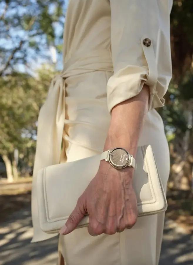 De batterij van de Garmin Lily 2 gaat tot wel vijf dagen mee, waardoor je niet constant hoeft te laden en de smartwatch altijd klaar is voor gebruik. De smartwatch is spatwaterdicht (5 ATM), wat betekent dat hij tegen regen en spatwater kan, ideaal voor dagelijks gebruik. Ook beschikt het horloge over valdetectie en muziekbediening vanaf de pols, zodat je je handen vrij hebt tijdens het luisteren. De horlogeband van siliconen in wit zorgt voor extra draagcomfort en past mooi bij het cremegouden horlogekastje.