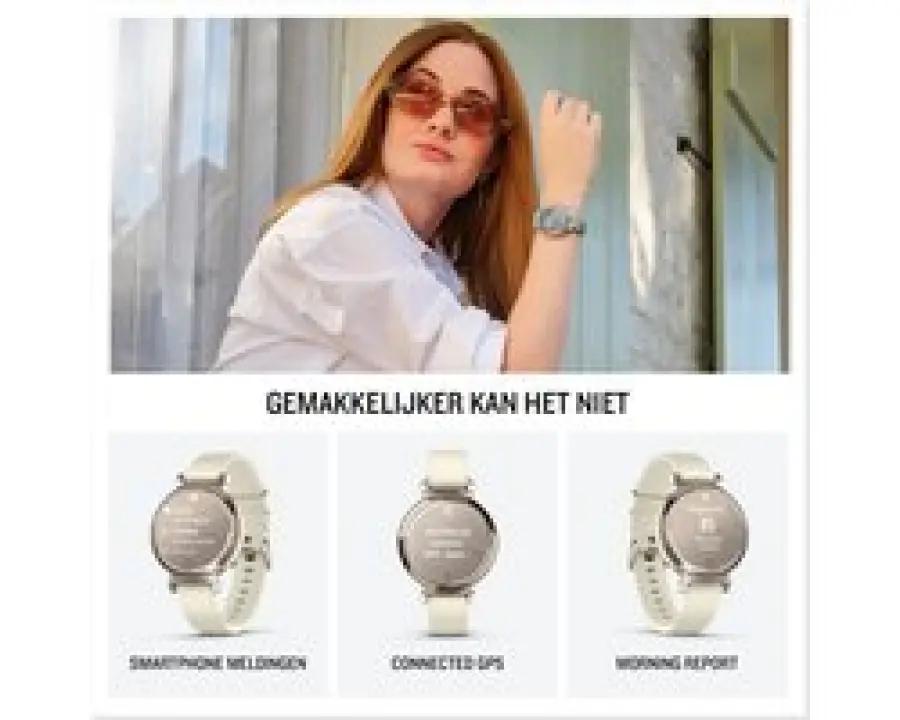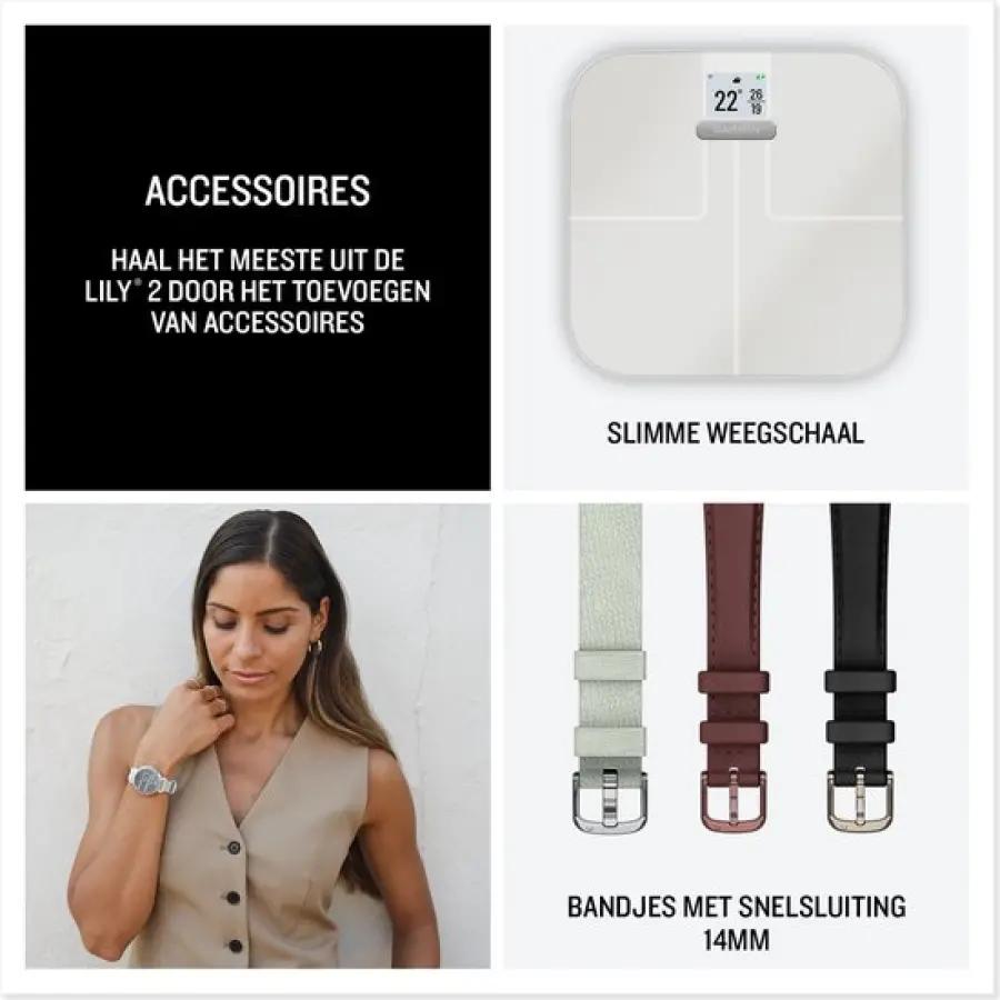 Met deze smartwatch blijf je moeiteloos verbonden met je smartphone. Je ontvangt telefoon-, sms- en e-mailmeldingen direct op je pols, zodat je niets mist. Daarnaast houdt de Lily 2 je lichaam goed in de gaten door het bijhouden van je stappen, slaap, hartslag, energieniveaus en gezondheidsgegevens voor vrouwen, zoals de tracking van je menstruatiecyclus. Zo krijg je een nauwkeurige schatting van je vitale data, handig voor je dagelijkse gezondheid en welzijn.