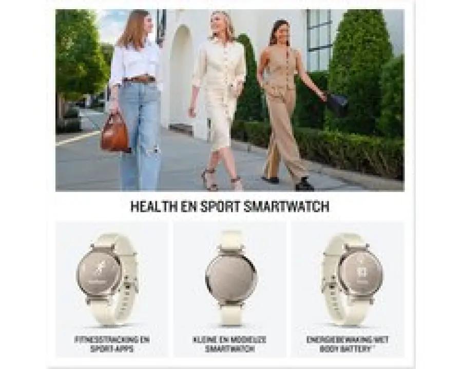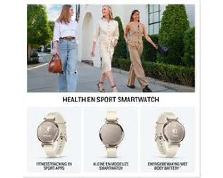 De Garmin Lily 2 is een trendy en verrassend kleine smartwatch, speciaal ontworpen voor vrouwen die stijl en functionaliteit willen combineren. Met een simpele polsbeweging licht het stijlvolle motief op de lens op, waarna je een helder en gebruiksvriendelijk TFT-touchscreen ziet. Dankzij het compacte formaat en het goudkleurige aluminium horlogekastje van 35 mm draagt de Lily 2 comfortabel en elegant om je pols.
