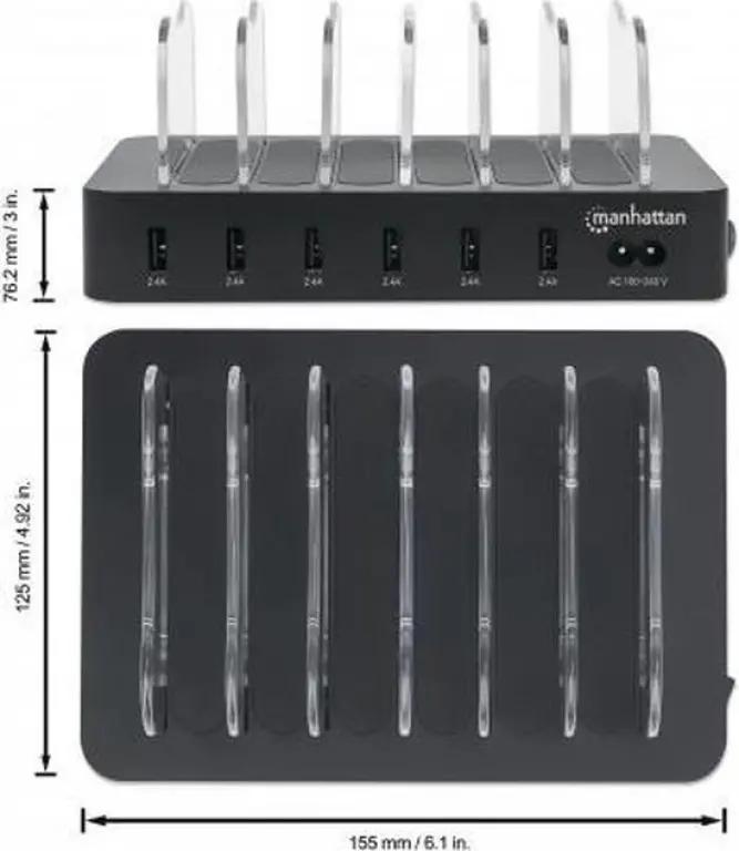 Manhattan 102254 - USB-laadstation - 6 Poorten - 2,4 A Output - Zwart