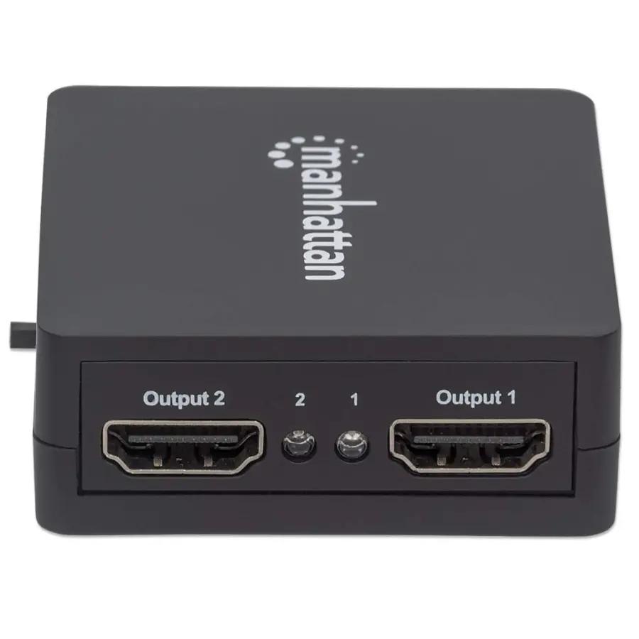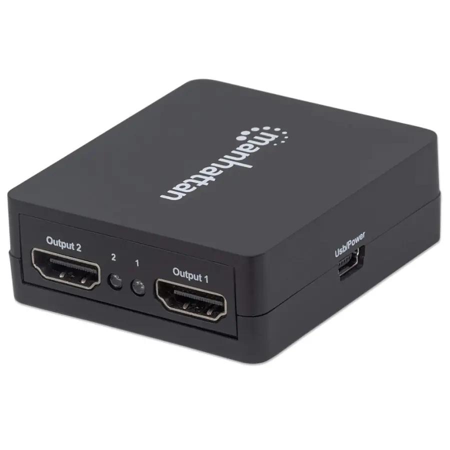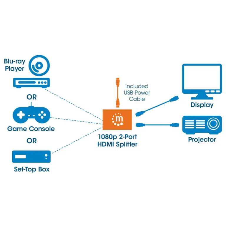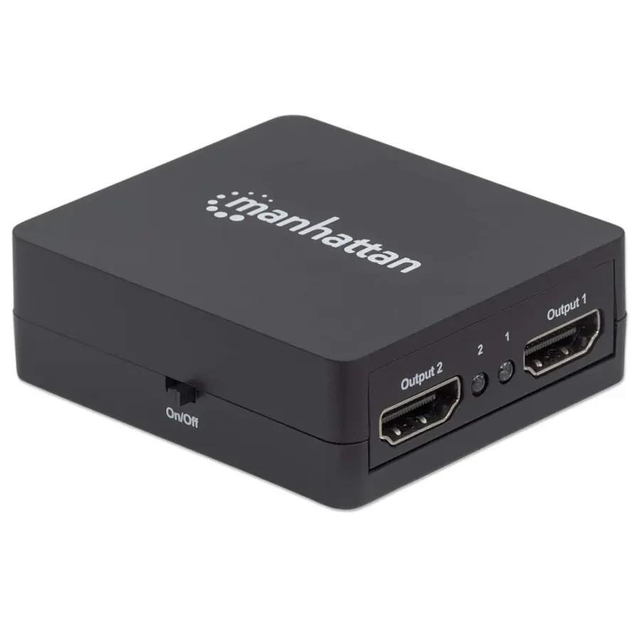 De Manhattan 207652 HDMI splitter verdeelt het HDMI-signaal van één bron naar twee HD-displays. Ideaal als je bijvoorbeeld jouw gameconsole, Blu-ray-speler of satellietontvanger op meerdere schermen tegelijk wilt gebruiken. Geen gedoe met ingewikkelde instellingen, want deze splitter werkt volledig plug & play. Sluit simpelweg de HDMI-kabels aan en je bent klaar om te gaan.