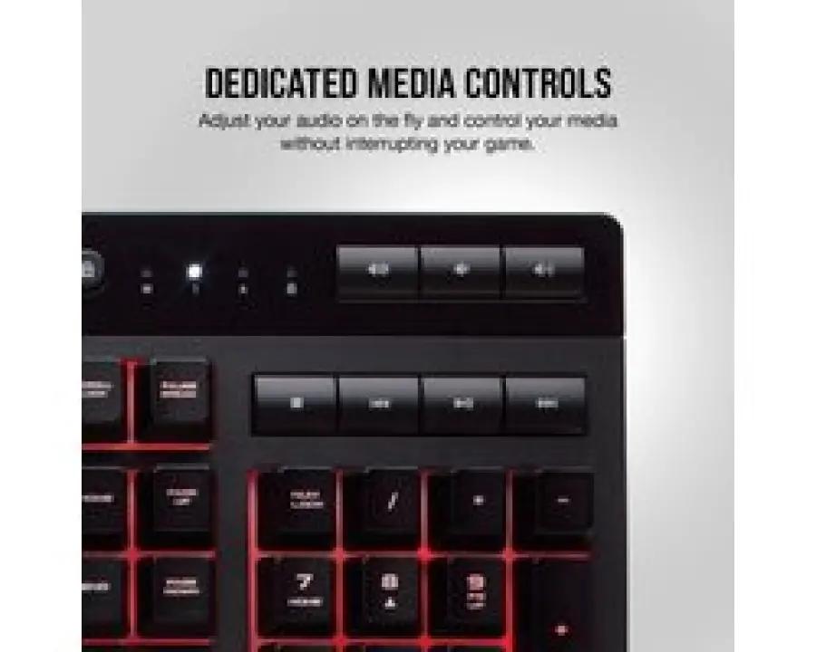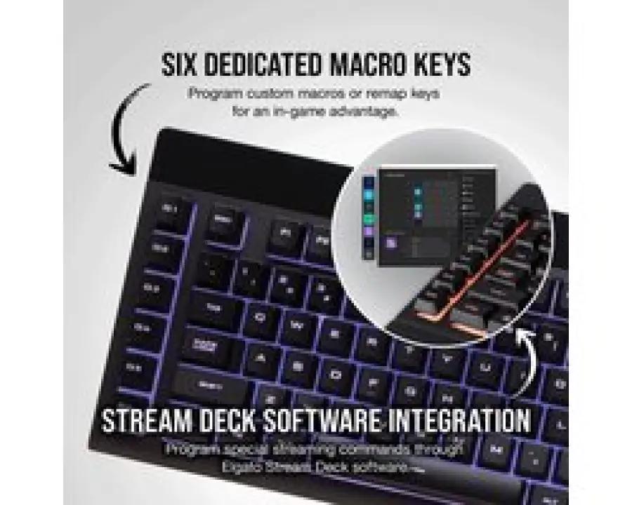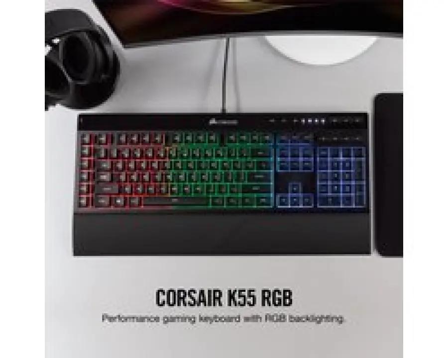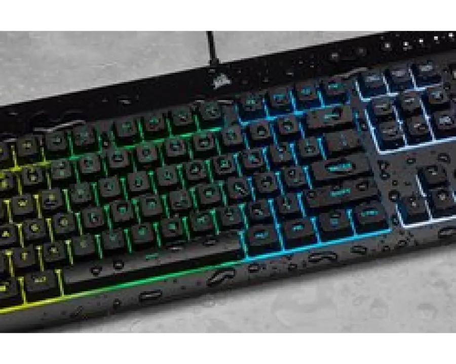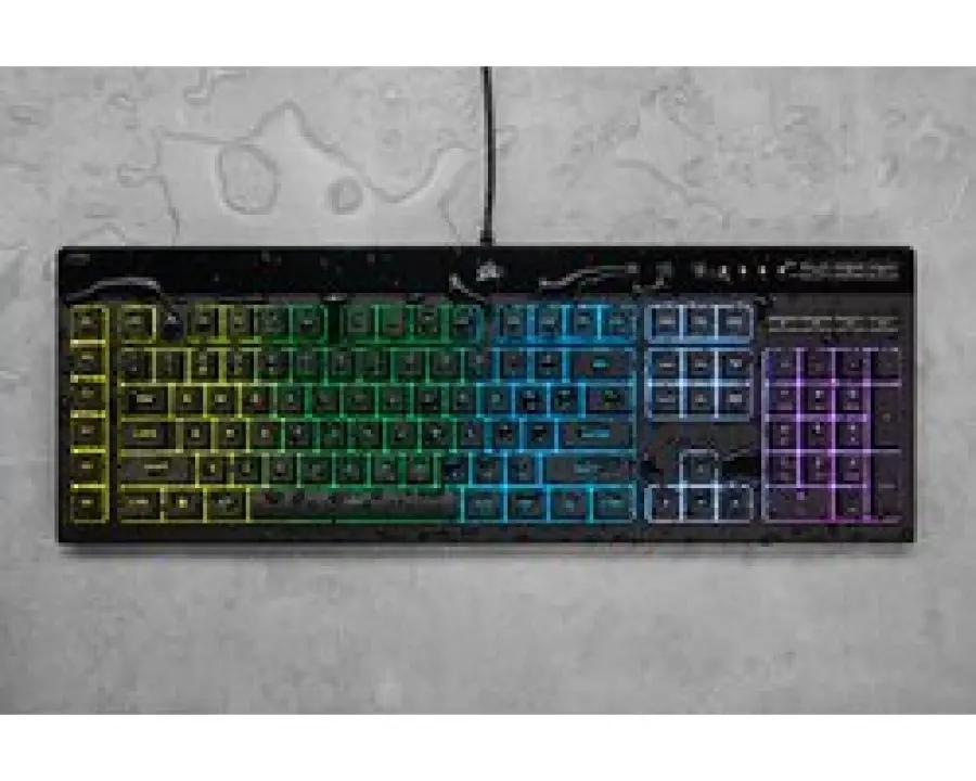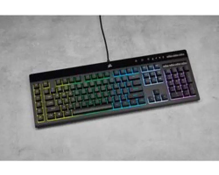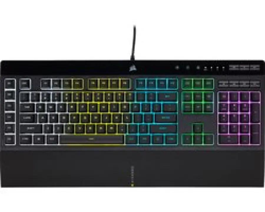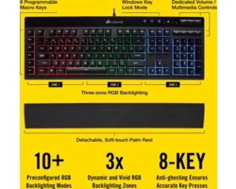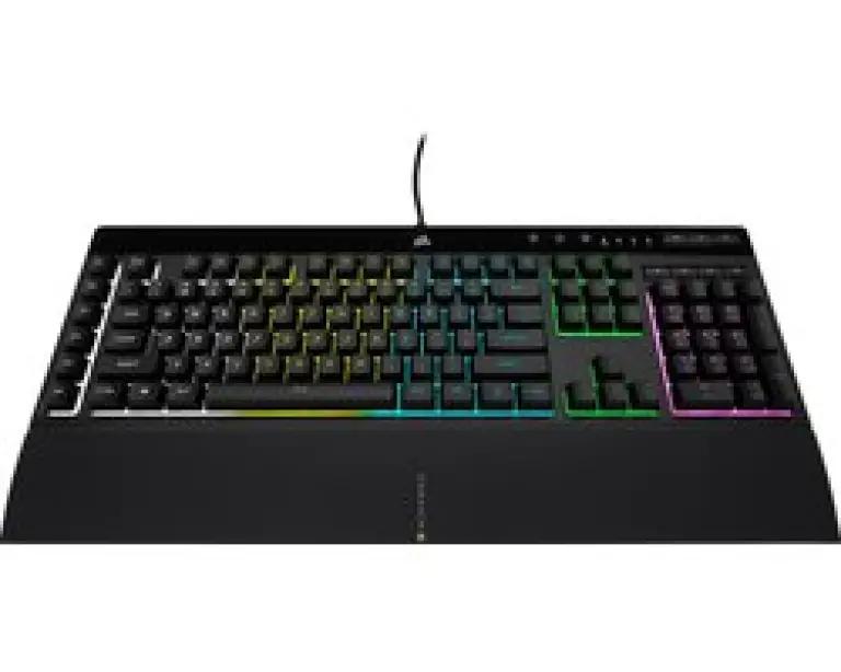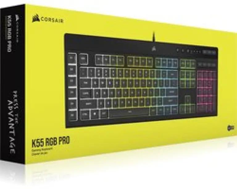 Het CORSAIR K55 RGB PRO-gamingtoetsenbord verlicht je desktop met sprankelende, dynamische RGB-verlichting in vijf zones en versterkt je gameplay met zes speciale, makkelijk in te stellen macrotoetsen. De K55 RGB PRO is gecertificeerd voor IP42 stof- en morsbestendigheid en is bestand tegen slijtage, scheuren en meer, met een afneembare polssteun die de hele dag comfort biedt. De stille en responsieve toetsen zijn comfortabel voor typen of gamen en met de speciale mediatoetsen heb je afspelen, pauzeren en meer binnen handbereik. De CORSAIR iCUE-software maakt het makkelijk je verlichting en macro’s te personaliseren. Anti-ghosting en selectieve key-rollover zorgen ervoor dat je kritische input wordt doorgegeven als die het belangrijkst is.