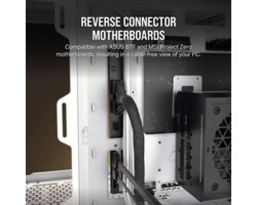 De Corsair 2500X is uitgerust met eenvoudige schijfbevestigingen zonder gereedschap, geschikt voor 2x 3,5 inch en 2x 2,5 inch opslag. Dit maakt het wisselen en toevoegen van harde schijven en SSD’s heel makkelijk. Het voorpaneel biedt moderne I/O-opties, waaronder USB 3.2 Gen-2 Type-C, zodat je snel en eenvoudig apparaten kunt aansluiten. Moederborden met een omgekeerde aansluiting zijn compatibel, wat zorgt voor een kabelvrij en overzichtelijk systeem.