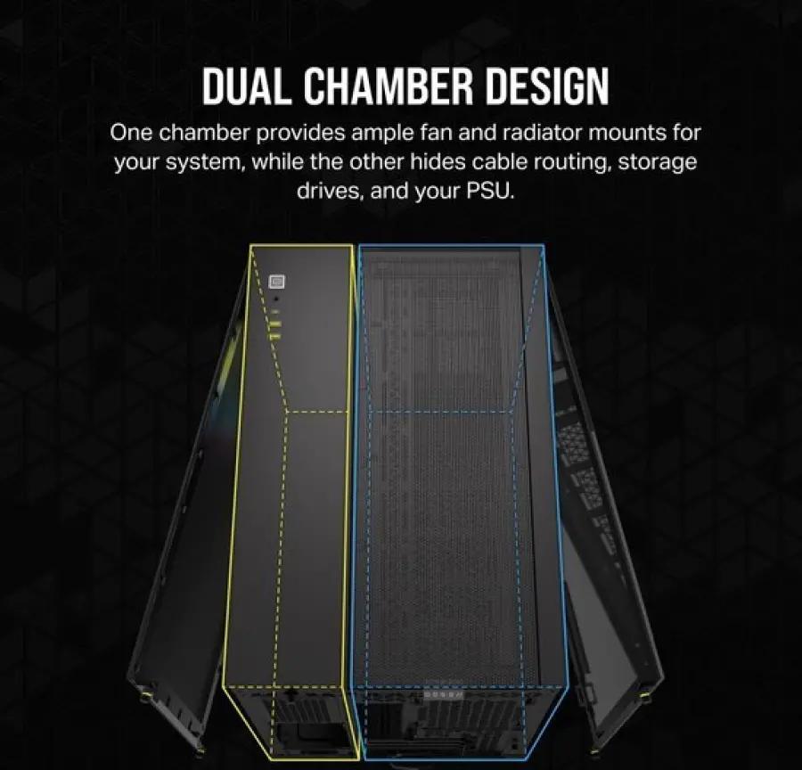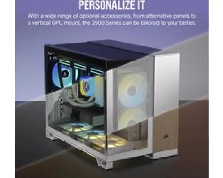 De Corsair 2500X Midi Tower is ontworpen voor wie houdt van een strak en georganiseerd PC-interieur. Dankzij de dubbele voorpanelen van gehard glas heb je een helder en stijlvol zicht op je systeem. Het compacte formaat verbloemt de vele opties die deze behuizing biedt, terwijl het een rommelvrije look garandeert dankzij een speciale kamer voor kabels, harde schijven en controllers.