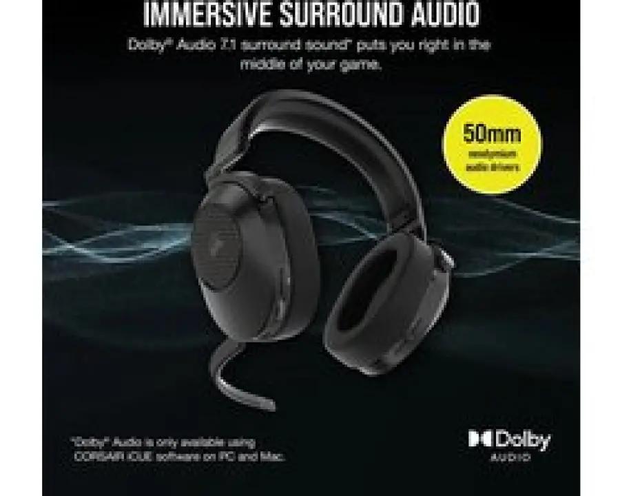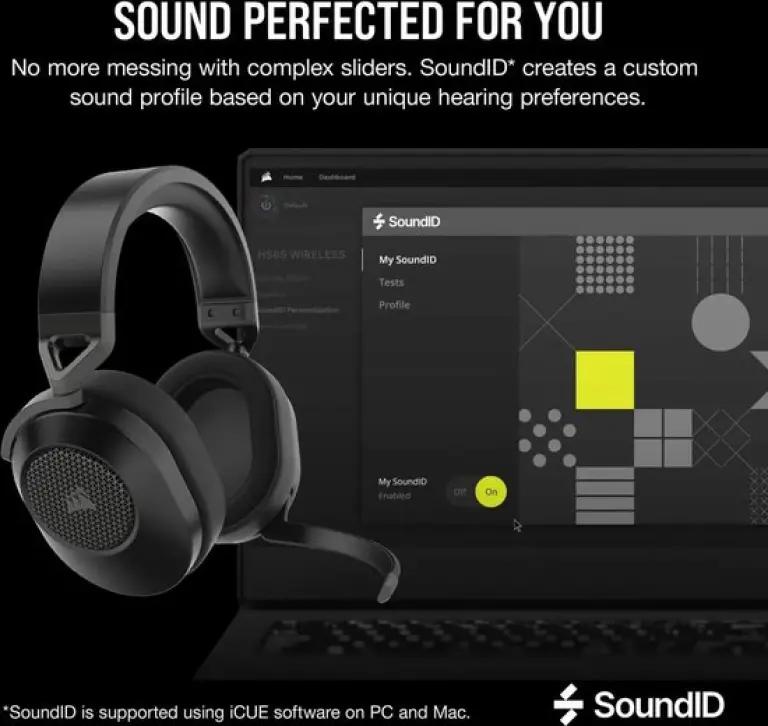 Met de speciaal aangepaste 50 mm neodymiumdrivers levert de Corsair HS65 een krachtig geluid met een breed bereik. Dolby Audio 7.1 Surround Sound zorgt voor een meeslepende game-ervaring op PC en Mac, terwijl de headset op de PlayStation 5 stereo geluid ondersteunt met virtueel surround geluid. Dankzij de SonarWorks SoundID-technologie kun je het geluid aanpassen aan jouw persoonlijke voorkeuren via de krachtige CORSAIR iCUE-software, waarmee je ook de audio-equalizer en meerkanaalsgeluid instelt.