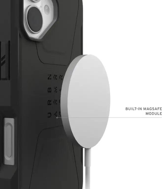 De URBAN ARMOR GEAR Civilian Backcover is uitgerust met ingebouwde MagSafe-magneettechnologie. Dit zorgt ervoor dat je gemakkelijk accessoires zoals een MagSafe draadloze oplader, kaarthouder, powerbank of telefoonhouder aan je iPhone kunt koppelen. Je hoeft het hoesje niet te verwijderen om je telefoon draadloos op te laden, wat het gebruik extra praktisch maakt.
