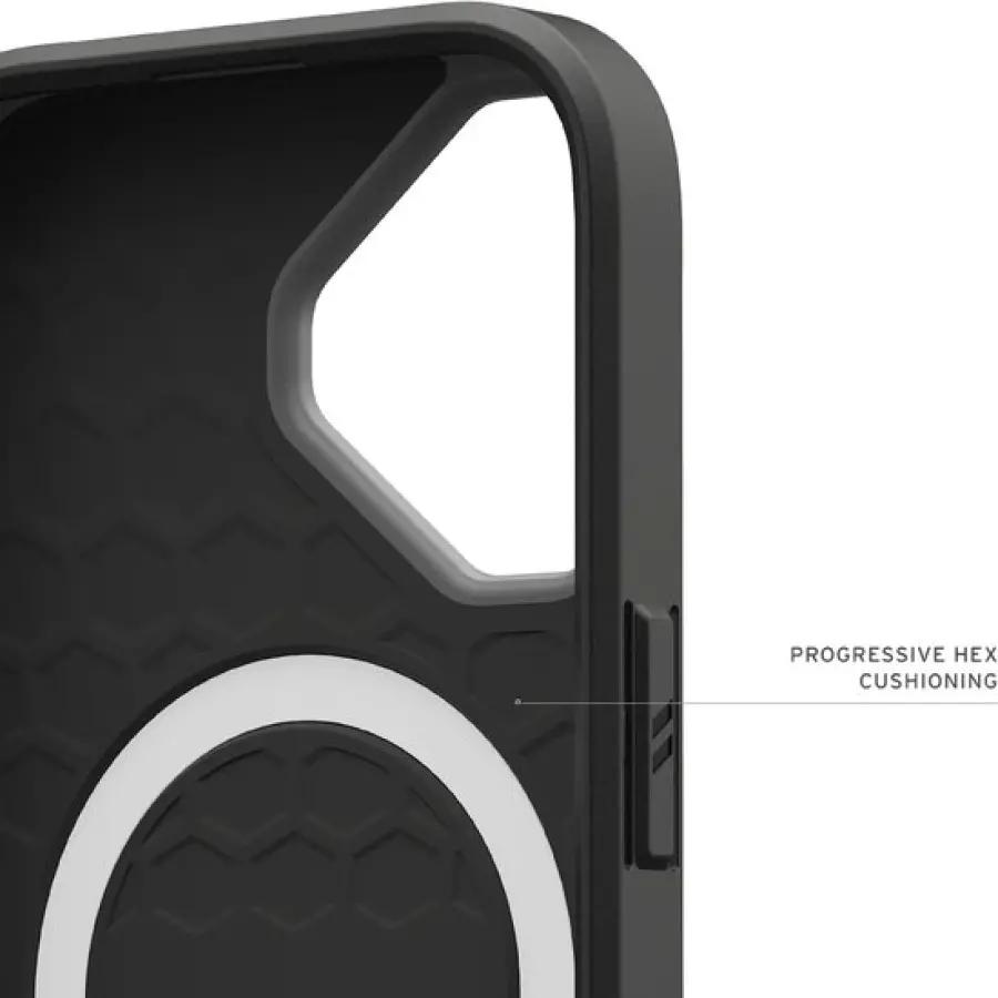 Met de URBAN ARMOR GEAR Civilian Backcover geef je jouw smartphone niet alleen een robuuste uitstraling, maar ook een uitstekende bescherming. Deze backcover is speciaal ontworpen voor de iPhone 17 en combineert hoogwaardig kunststof met schokabsorberend siliconenmateriaal. Het dynamische zeshoekige patroon vangt schokken op, waardoor je toestel goed beschermd is als hij per ongeluk valt.
