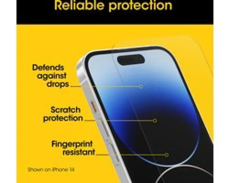 De OtterBox Glass schermbeschermer is speciaal ontworpen voor de iPhone 15 Pro met een schermgrootte van 15,5 cm (6.1"). Dankzij het transparante ontwerp blijft het originele schermontwerp volledig zichtbaar zonder kleurvervaging.
