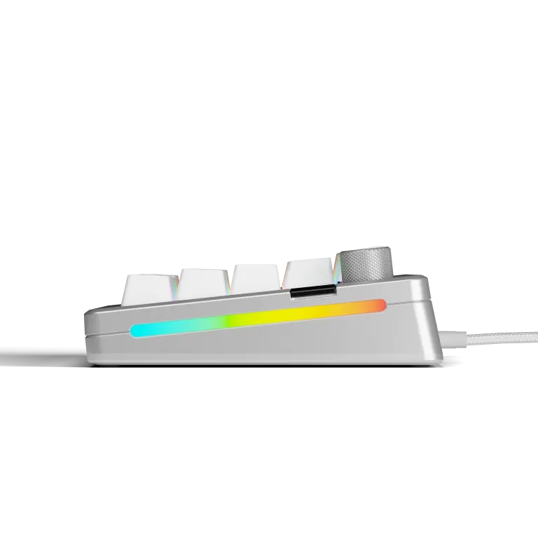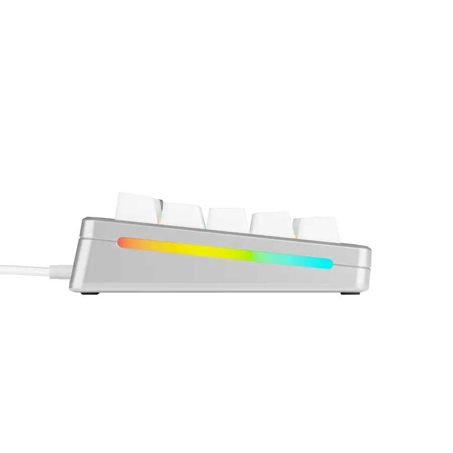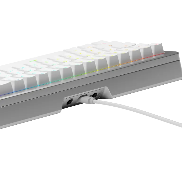 Dit toetsenbord heeft een slank en stevig aluminium ontwerp in een stijlvolle zilveren kleur. De RGB LED-backlight zorgt voor een kleurrijke en sfeervolle uitstraling die je volledig naar wens kunt instellen. Dankzij het hoog profiel van de toetsen en de double shot PBT keycaps is de typervaring niet alleen comfortabel, maar ook duurzaam en slijtvast.