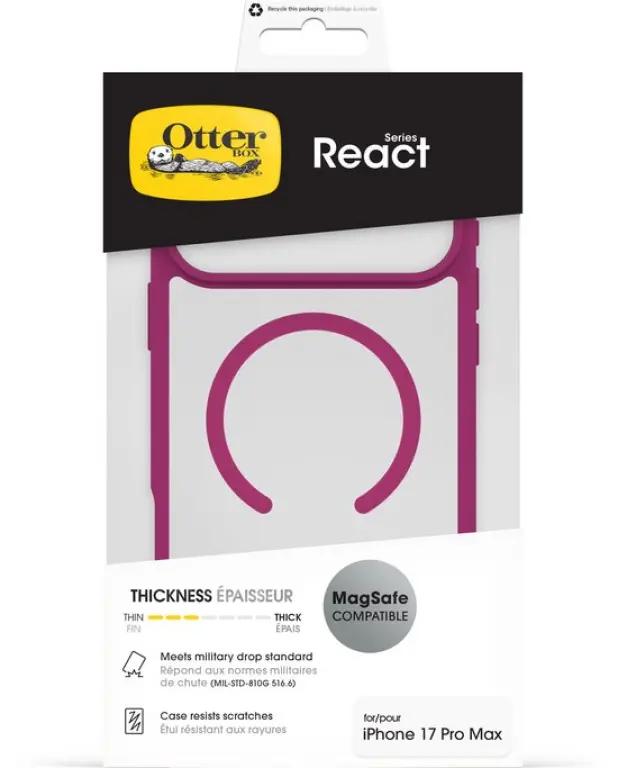 De OtterBox React MagSafe hoes is speciaal ontworpen voor de Apple iPhone 17 Pro Max. Dit hoesje combineert een strak, transparant ontwerp met een vrolijke roze kleur, zodat jouw telefoon er niet alleen goed uitziet, maar ook optimaal beschermd is. Dankzij de back cover vormgeving blijft het toestel slank en licht in gebruik.