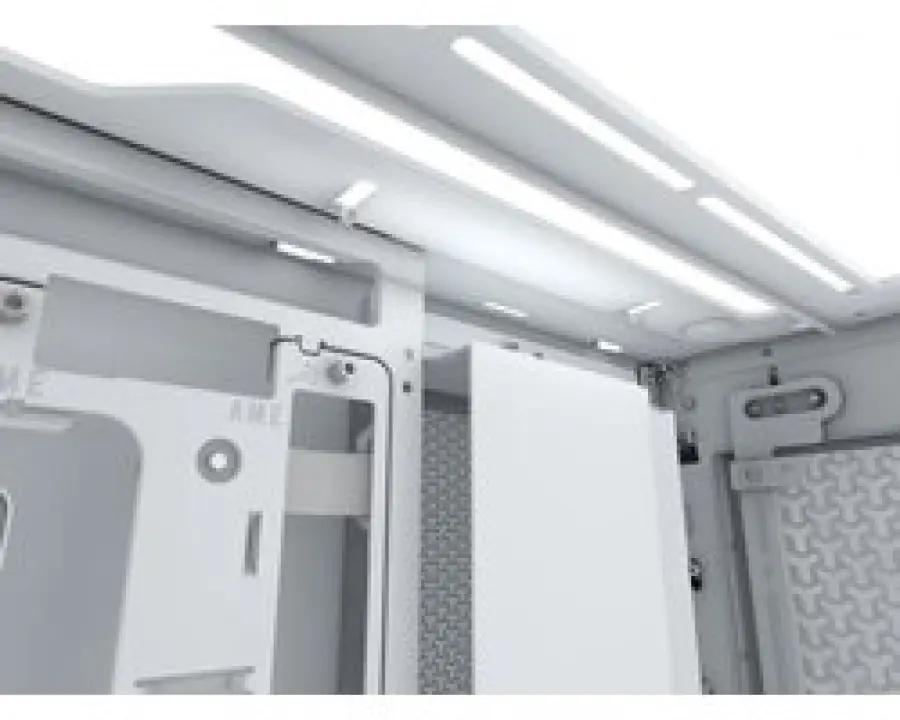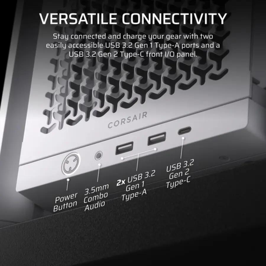 De behuizing heeft een zijpaneel van gehard glas om je build mooi te laten zien. Kabelmanagement is ingebouwd voor een nette afwerking. Ook is er een GPU Anti-Sag-stabilisator aanwezig die voorkomt dat je grafische kaart doorzakt. Verder is de behuizing voorzien van stoffilters om je componenten schoon te houden.