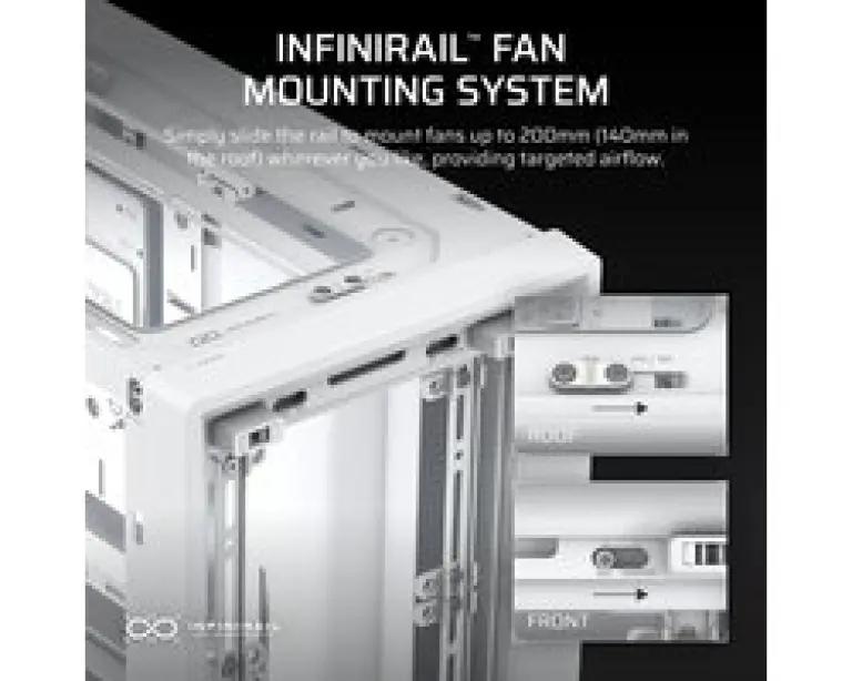 Met de Corsair FRAME 4000D stap je af van traditionele pc-behuizingen. Dit model heeft een innovatief modulair FRAME-systeem, waarmee je jouw pc-build helemaal naar eigen wens kunt aanpassen. Dankzij het InfiniRail-montagesysteem wordt het plaatsen van ventilatoren een fluitje van een cent. Zo bouw je eenvoudig een krachtige en stijlvolle machine.