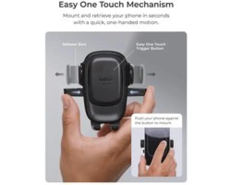 Met de iOttie Easy One Touch 6 autohouder plaats je je telefoon snel en veilig in de auto. Dankzij het unieke Easy One Touch mechanisme klik je je toestel met één hand vast en haal je het er ook weer gemakkelijk uit. Zo houd je je aandacht op de weg en heb je altijd je navigatie of muziek binnen handbereik.