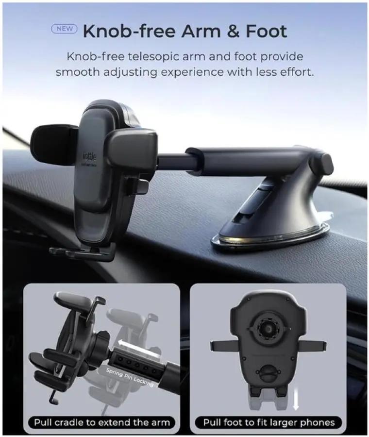 De houder heeft verstelbare armen die geschikt zijn voor bijna alle smartphones. Of je nu een klein of groot toestel hebt, de iOttie Easy One Touch 6 houdt hem stevig vast zonder dat je bang hoeft te zijn dat hij eruit valt tijdens het rijden.