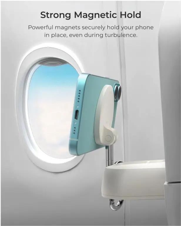 Met de iOttie Treker MagSafe Telefoonhouder geniet je van extra gemak tijdens je reis in het vliegtuig of de trein. Dankzij de sterke magneet klik je jouw telefoon of hoesje met MagSafe of Qi2 eenvoudig en stevig vast. Geen MagSafe of Qi2? Geen probleem! De meegeleverde magnetische ring maakt het mogelijk om ook telefoons zonder deze technologieën te gebruiken. Dit zorgt voor een universele pasvorm en maximale flexibiliteit.