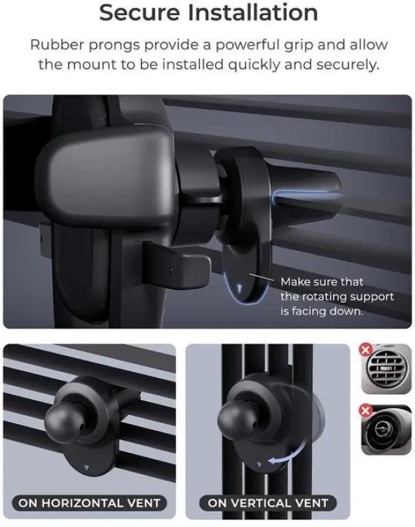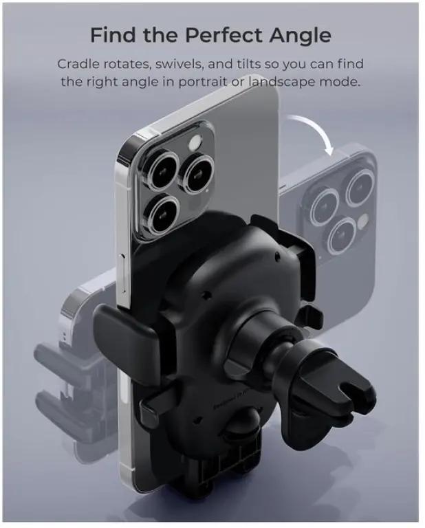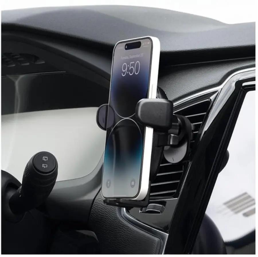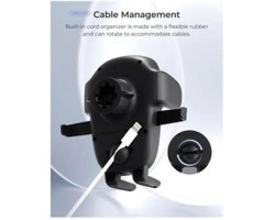 De verstelbare armen van de houder passen vrijwel alle telefoons, van klein tot groot. Daarnaast is de houder 360° draaibaar, zodat je altijd de perfecte kijkhoek kunt instellen. Of je nu in de landscape- of portretstand wilt navigeren, deze houder maakt het mogelijk. De stevige klem blijft ook op hobbelige wegen stabiel, zodat je telefoon veilig blijft zitten zonder te wiebelen.