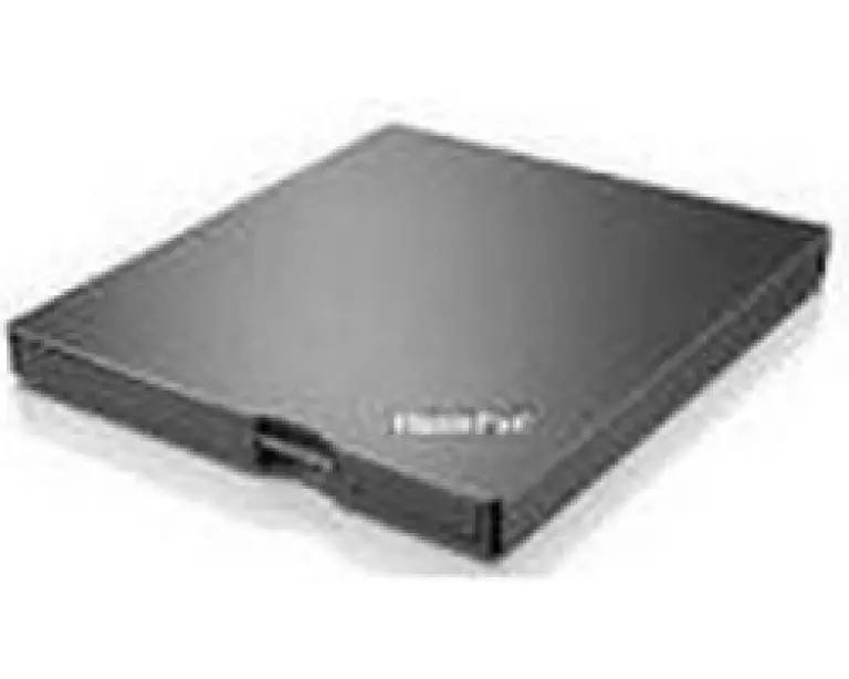 De Lenovo ThinkPad UltraSlim USB DVD Burner is een externe optische drive die je makkelijk meeneemt en aansluit op zowel desktops als notebooks. Dankzij het slanke, zwarte ontwerp past deze brander perfect bij jouw apparatuur zonder veel ruimte in te nemen.