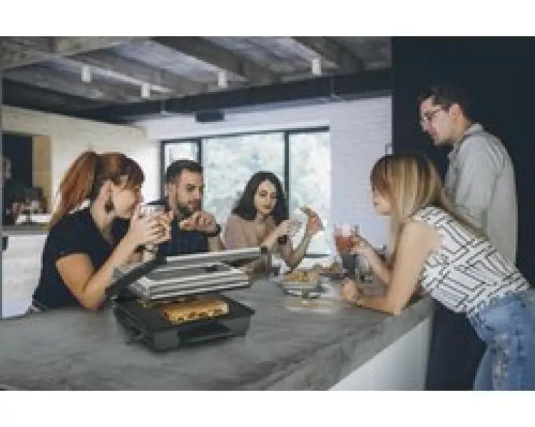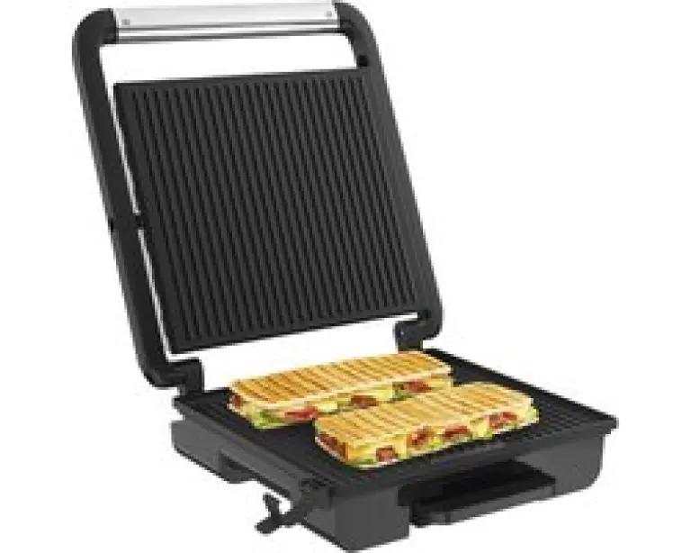 Een multifunctionele contactgrill met 3-standen thermostaat voor o.Aa vlees vis of grunten.