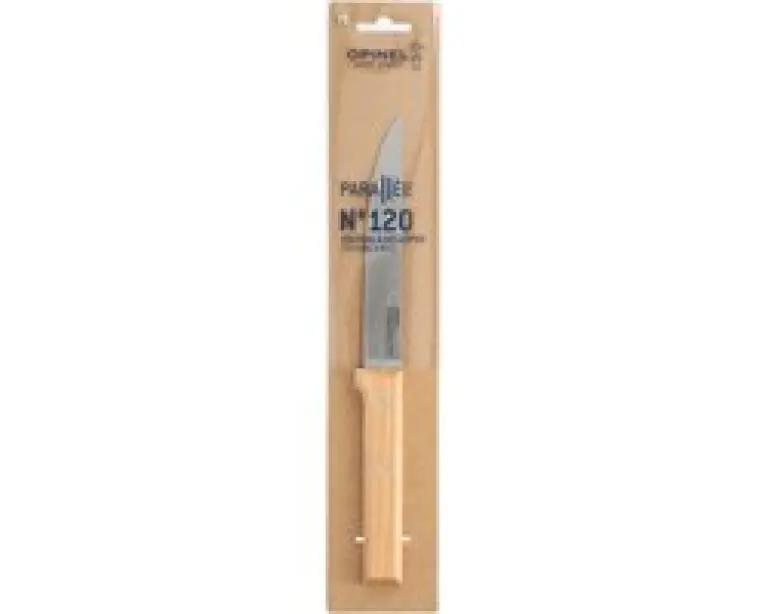 Het Opinel Parallèle N°120 vleesmes is een schitterend voorbeeld van klassiek Frans design gecombineerd met optimaal gebruiksgemak. Dit mes heeft een lemmet van 16 cm gemaakt van hoogwaardig roestvrij staal, wat garant staat voor een vlijmscherpe snede en lange levensduur. Het heft is vervaardigd uit duurzaam Frans beukenhout met een karakteristieke nerf, afgewerkt met een beschermende vernislaag tegen vocht en vuil. Zo ligt het mes stevig en comfortabel in je hand.