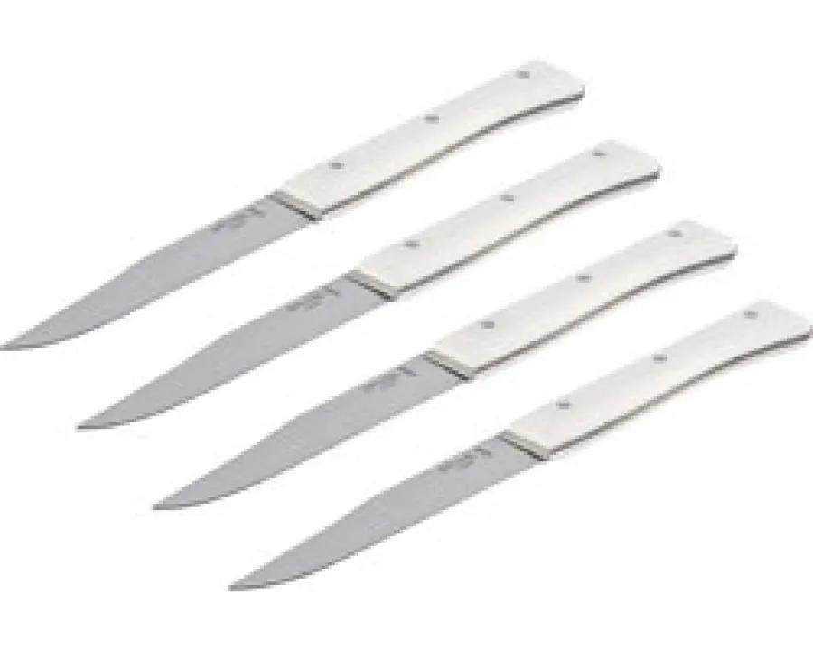 Maak kennis met de Opinel Facette tafelmessenset in het fris witte design. Deze set bestaat uit vier tafelmessen die perfect zijn voor dagelijks gebruik aan tafel. Elk mes heeft een glad lemmet van hoogwaardig roestvrij staal, wat zorgt voor een uitstekende corrosiebestendigheid en een scherpe snijkant die lang meegaat.