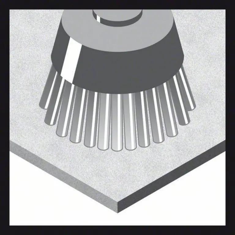Met een diameter van 65 mm en een draaddikte van 0,35 mm is deze borstel stevig en krachtig. Hij draait tot maximaal 12.500 toeren per minuut, waardoor hij snel en efficiënt werkt zonder afbreuk te doen aan de kwaliteit. Dit maakt hem perfect voor intensief gebruik op diverse metalen ondergronden.