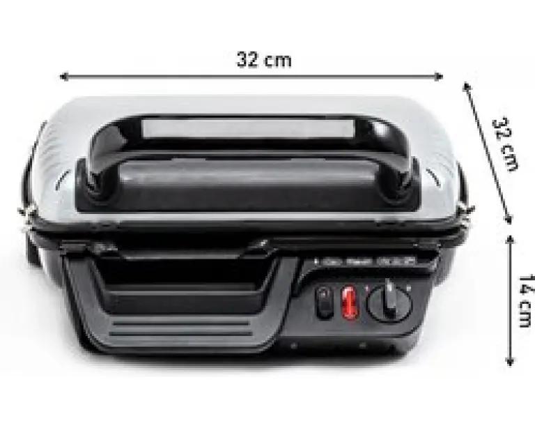 Met een grilloppervlak van 600 cm² en een compact formaat van 32 cm x 32 cm x 14 cm past deze grill gemakkelijk in je keuken en is hij eenvoudig op te bergen na gebruik.