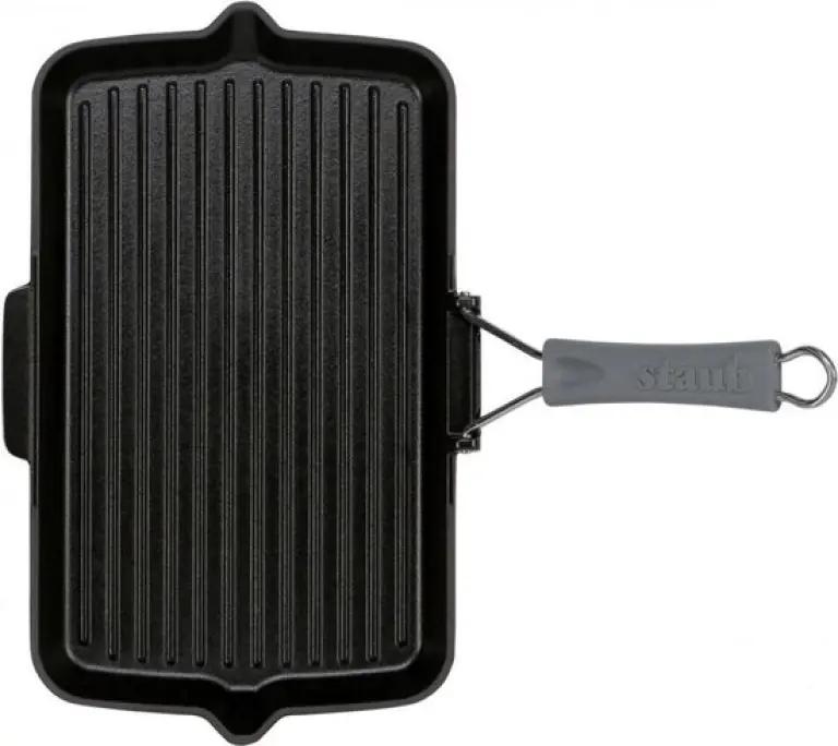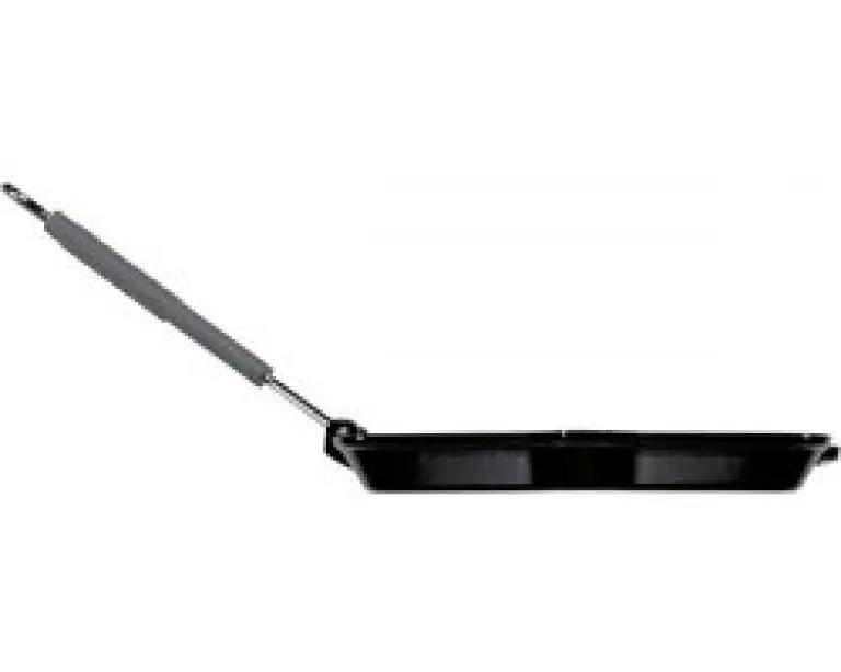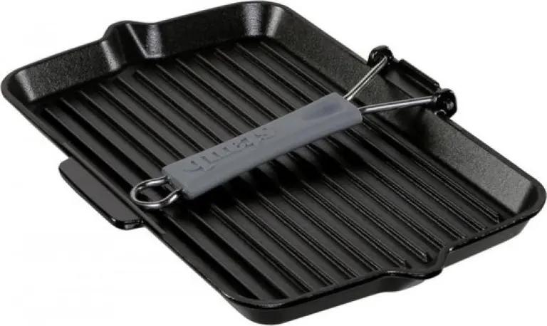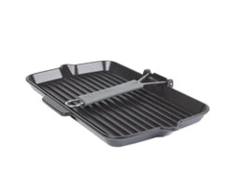 De grillpan is gemaakt van stevig gietijzer met een zwarte afwerking en heeft een rechthoekige vorm van 24 x 20 cm. Dit materiaal houdt de warmte uitstekend vast en verdeelt deze gelijkmatig over de hele bakplaat. De kunststof handgreep biedt een veilige grip tijdens het koken, hoewel er geen cool touch functie aanwezig is.