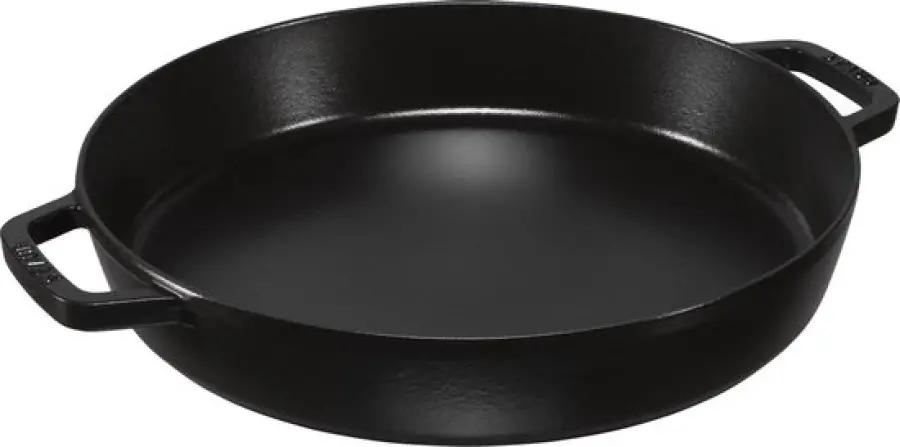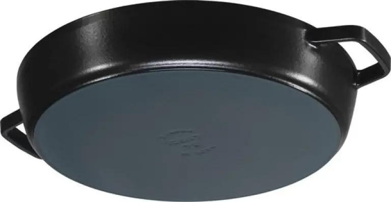 De pan komt zonder deksel en is voorzien van twee stevige handgrepen, wat het hanteren makkelijk en veilig maakt. Met een volume van 4,36 liter biedt deze braadpan genoeg ruimte voor het bereiden van grote maaltijden. Het zwarte gietijzeren materiaal geeft de pan een tijdloze uitstraling die in elke keuken past.