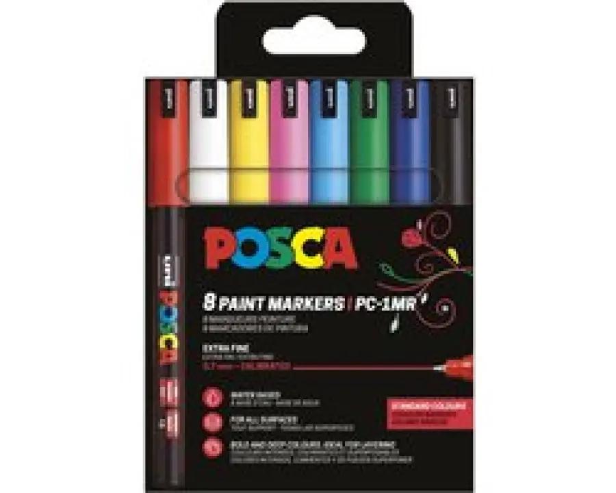 Met de Posca PC-1MR metallic markers set van 8 kleuren geef je jouw projecten een sprankelende touch. Deze markers zijn geschikt voor bijna alle ondergronden zoals hout, textiel, karton, metaal, keramiek en plastic. Wil je op een glad oppervlak zoals glas werken? Dan zijn ze zelfs uitwisbaar, waardoor je makkelijk kunt corrigeren of nieuwe ontwerpen kunt maken. Voor metaal, plastic en geglazuurd aardewerk is het aan te raden je kunstwerk te fixeren met een fixatielak, zodat je creatie langdurig mooi blijft.