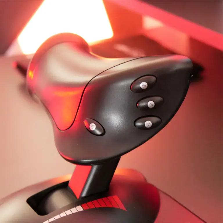 Deze joystick beschikt over maar liefst 12 programmeerbare knoppen en 5 assen, waardoor je jouw vlucht helemaal naar wens kunt instellen. De exclusieve "MAPPING" knop maakt het mogelijk om functies direct onderling te wisselen, zodat je altijd snel en efficiënt kunt reageren tijdens het vliegen.