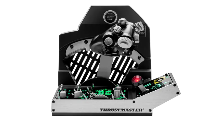 Dankzij maar liefst 43 metalen actieknoppen, waaronder 11 virtuele knoppen, 6 assen en een trimwiel, biedt dit systeem je volledige controle tijdens intensieve vluchten en gevechten. De iconische CHAFF/FLARE-slap-schakelaar voor het inzetten van tegenmaatregelen en de schakelaars voor laser richten, verstoring en wapens afvuren zorgen voor een levensechte gameplay die je midden in de actie plaatst.