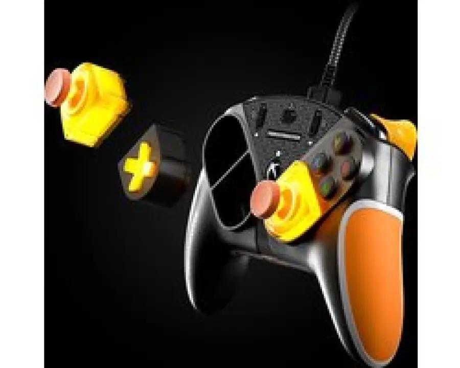 De set wordt geleverd met vervangende bolvormige mini-stick-kapjes en professionele oranje gebogen triggers met een comfortabele bekleding. Daarnaast is er gratis software beschikbaar voor Xbox- en PC-gamers waarmee je gaming-presets kunt instellen, knoppen opnieuw toewijzen, de gevoeligheid aanpassen en trillingen instellen. Dit maakt deze reserve-onderdelenset niet alleen krachtig, maar ook volledig naar jouw wensen aanpasbaar.