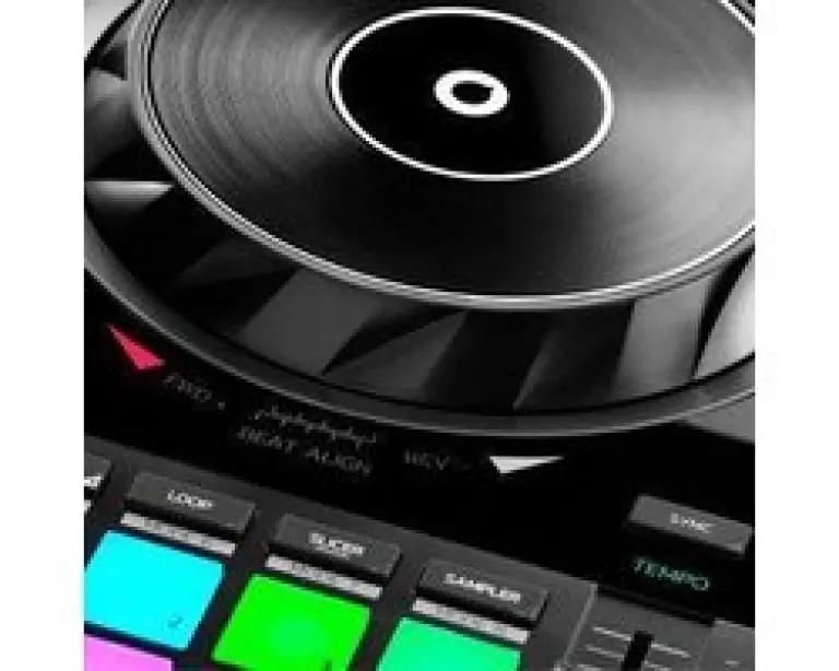 Met 16 RGB-pads met acht verschillende modi, waaronder Hot Cue, Loop en Slicer, heb je volop creatieve mogelijkheden. De controller is uitgerust met Play/Pause, Cue, Shift, Sync en jogwielen met aanraakdetectie. Daarnaast kun je eenvoudig Vinyl, Slip, Quantize en Loop In/Loop Out bedienen. Elk deck heeft drie EQ-draaiknoppen en een gain-draaiknop, en in het midden vind je een filter- en effectenrack met meerdere draaiknoppen voor nog meer controle over je geluid.