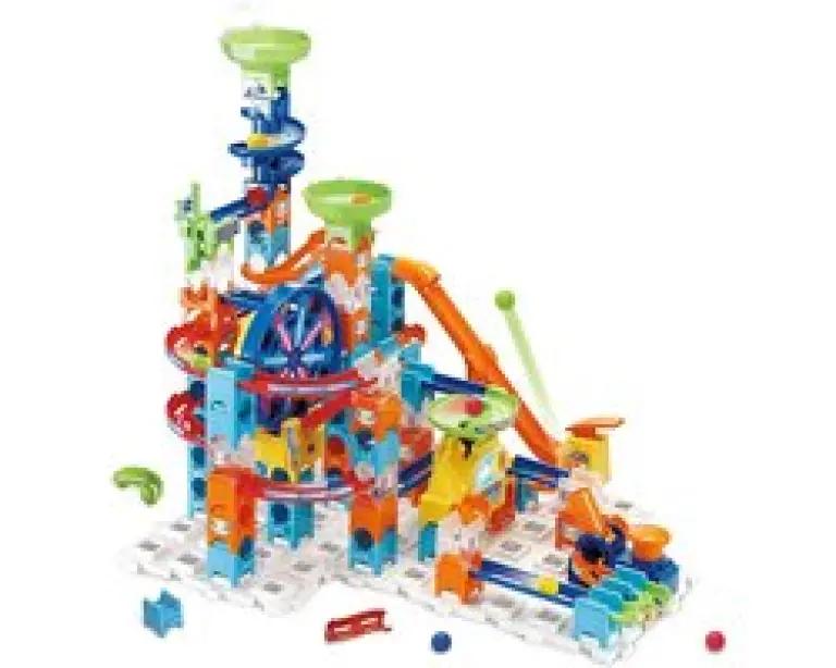 Met de VTech Marble Rush Ultimate Set Electronic XL100E beleef je urenlang speelplezier. Deze set bevat maar liefst 128 onderdelen waarmee je een indrukwekkende knikkerbaan bouwt. Het parcours is compleet met een gemotoriseerd reuzenrad en een trechter die licht- en geluidseffecten activeert zodra de knikkers erdoorheen rollen. Hiermee wordt jouw knikkerbaan tot een levendig en spannend spektakel.