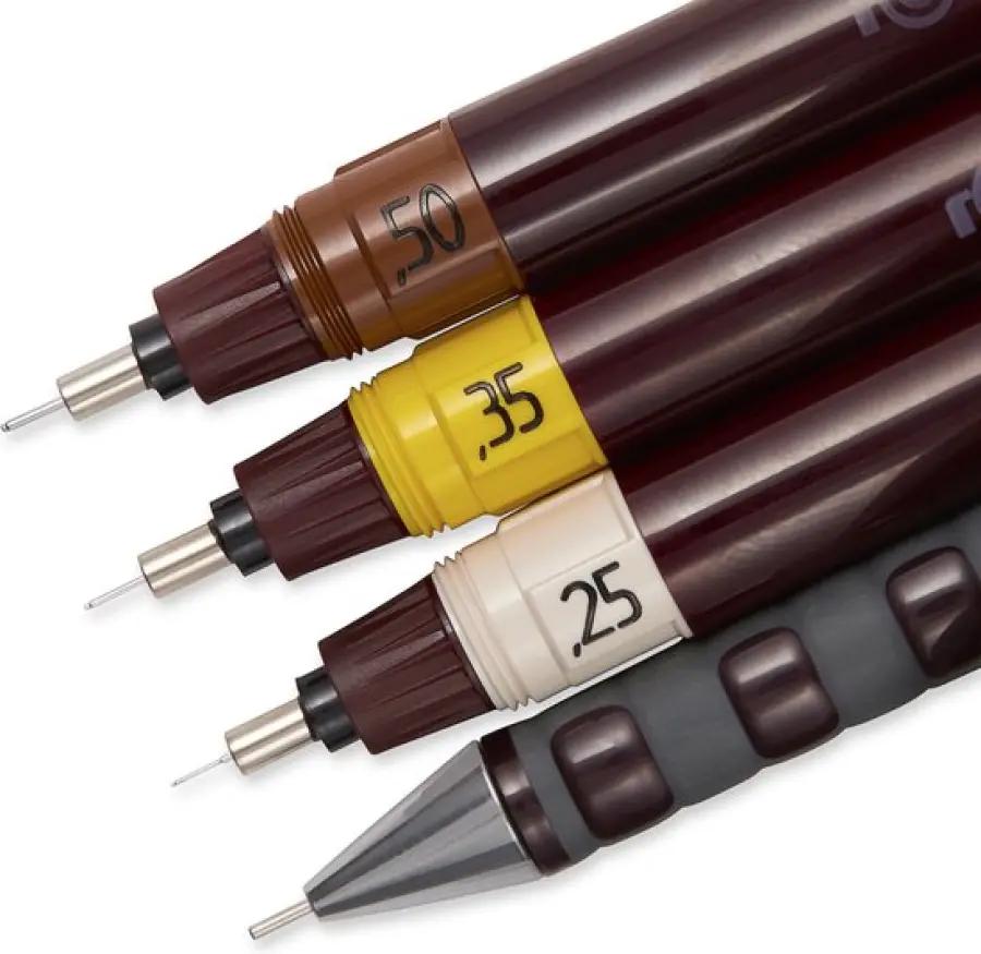 De Rotring Isograph College Set bestaat uit drie technische pennen met verschillende puntdiktes van 0,25 mm, 0,35 mm en 0,5 mm. Deze set is ideaal voor iedereen die houdt van gedetailleerd en precies werk. De pennen zijn voorzien van een slijtvaste, hardverchroomde dunne punt die zorgt voor prachtige details in je tekeningen of schetsen.