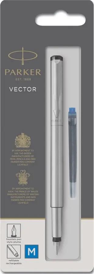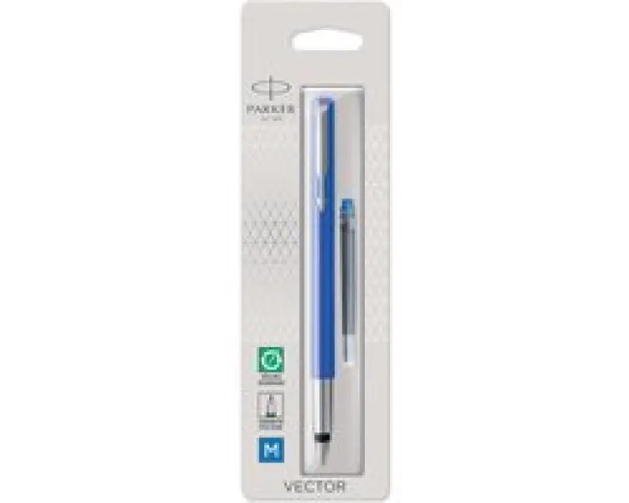 De Parker Vector wordt geleverd in een handige verpakking met een lang inktpatroon met blauwe inkt. Zo kun je meteen aan de slag met schrijven zonder extra accessoires nodig te hebben. De lichte kunststof behuizing maakt deze pen ook gemakkelijk mee te nemen.