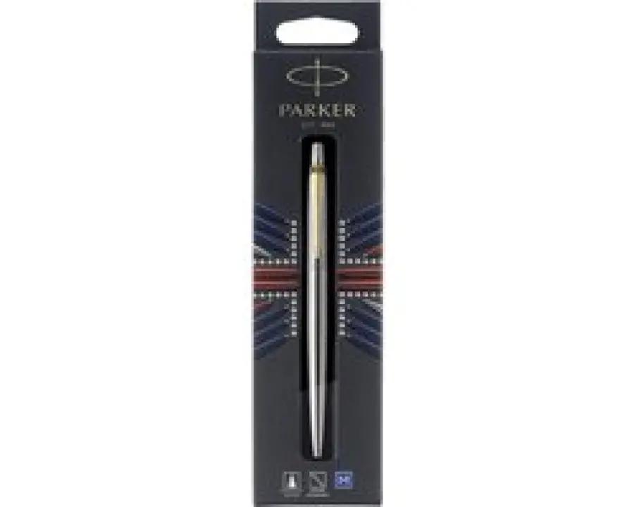 De Parker Jotter 1953206 is een balpen met een tijdloos design dat al ruim 60 jaar mensen inspireert. De pen heeft een roestvrijstalen behuizing gecombineerd met prachtige gouden accenten, zoals de hoogglans gouden afwerking en de karakteristieke pijlvormige clip. Dit maakt de pen niet alleen duurzaam, maar ook een echte eyecatcher op je bureau.