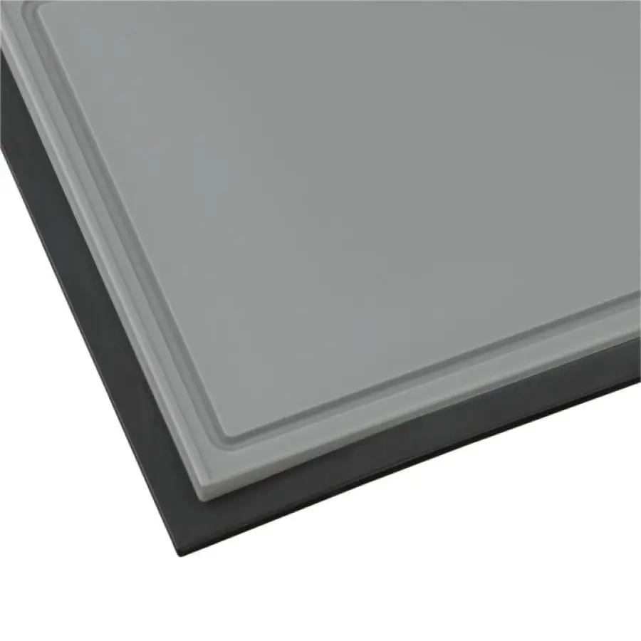 Met zijn monochromatische grijze kleur past deze plank in elke keukenstijl, van modern tot klassiek. En het beste? Je stopt hem gewoon in de vaatwasser na gebruik. Zo houd je je keuken hygiënisch en bespaar je tijd op schoonmaken. Een snijplank zonder handvatten, wat betekent dat hij compact blijft en makkelijk op te bergen is, zelfs in kleine keukens.