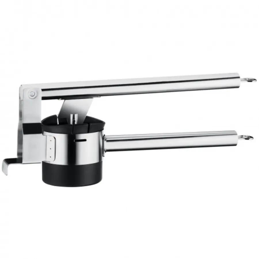 De handknoflookpers is onderdeel van de Profi Plus collectie en ontworpen door WMF Atelier. Met een lengte van 350 mm en een breedte van 130 mm ligt hij prettig in de hand en biedt hij voldoende hefboomwerking om knoflook moeiteloos te persen. Het roestvrijstalen materiaal zorgt ervoor dat de pers lang meegaat en bestand is tegen dagelijks gebruik, terwijl hij na gebruik gewoon in de vaatwasser kan voor een snelle en hygiënische reiniging.