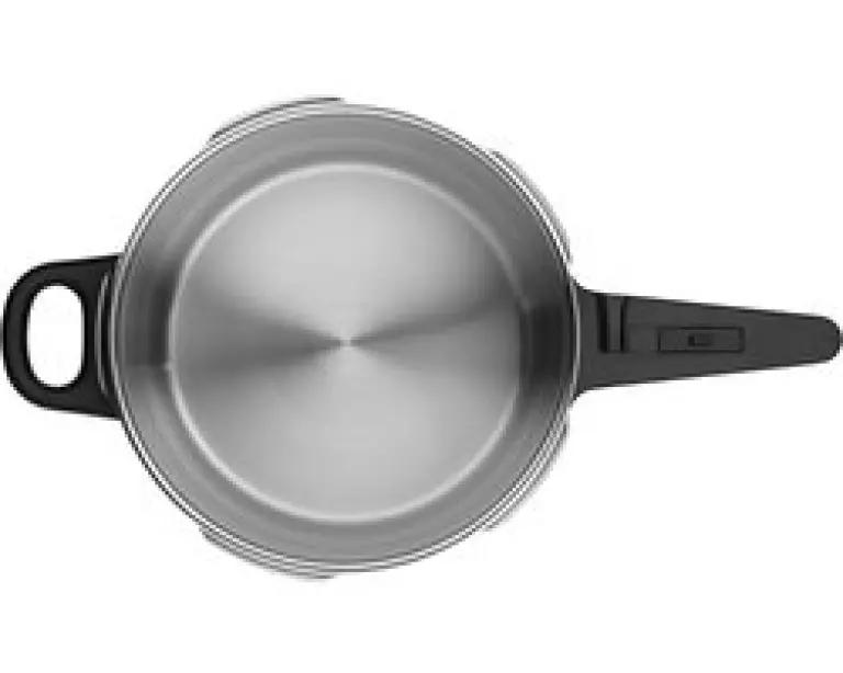 De WMF Perfect snelkookpan is gemaakt van glanzend Cromargan® 18/10 roestvrijstaal en heeft aan de binnenzijde een maataanduiding zodat nauwkeurig te zien is hoeveel liter er in de pan zit. Tevens heeft de snelkookpan een TransTherm® bodem die de warmte snel verdeelt en goed vasthoudt. Hierdoor is de pan geschikt is voor alle warmtebronnen, waaronder inductie.