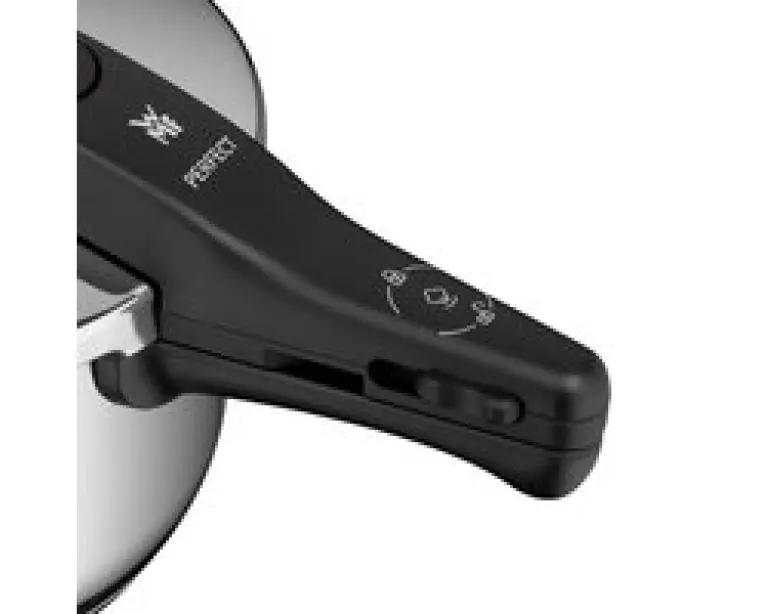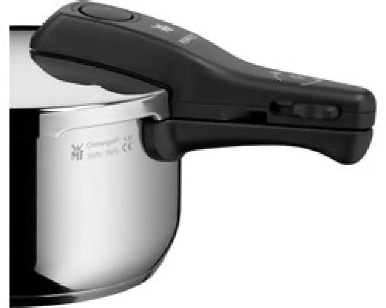 De snelkookpannen van WMF zijn veiliger dan ooit dankzij het nieuwe Safe Lock systeem; dit systeem voorkomt dat de snelkookpan geopend kan worden terwijl er nog druk in de pan zit. Op de handgreep zit een pin, deze geeft aan of er nog druk in de pan aanwezig is ja of nee: