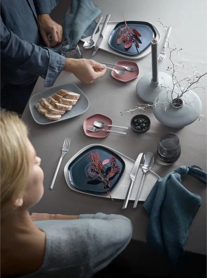 De set combineert symmetrische en asymmetrische lijnen die niet alleen mooi ogen, maar ook perfect in de hand liggen. Dankzij het ergonomische ontwerp voelt elk stuk bestek comfortabel aan, wat het gebruik elke dag weer prettig maakt. De hoogwaardige materialen zorgen voor een luxe uitstraling en een stevige, duurzame kwaliteit die je blijft waarderen.