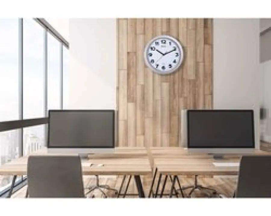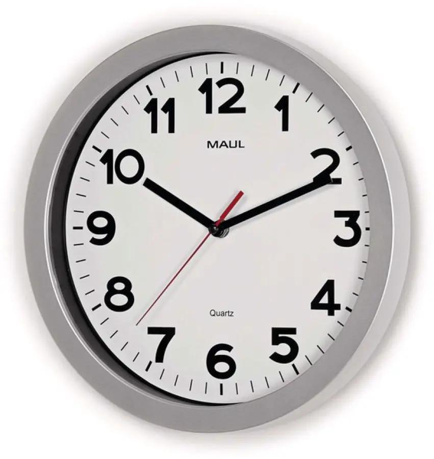 De Maul 9053195 wand- & tafelklok combineert een modern en aantrekkelijk design met praktische eigenschappen. De klok heeft een zilverkleurige rand gemaakt van hoogwaardig kunststof, wat zorgt voor een stevige en lichte afwerking. De ronde klok met een diameter van 30 cm past perfect in diverse ruimtes zoals kantoren, spreekkamers, ontvangsthallen, werkplaatsen of bij jou thuis.