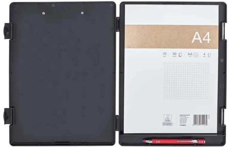 Je documenten zijn met dit klembord stoot-, stof- en spatwaterbeschermd, ideaal voor gebruik buiten of in wisselende omstandigheden. De praktische clip-sluiting houdt alles goed op zijn plek. Extra handig is het opbergvak en de pennenhouder, zodat je altijd je schrijfbenodigdheden bij de hand hebt.